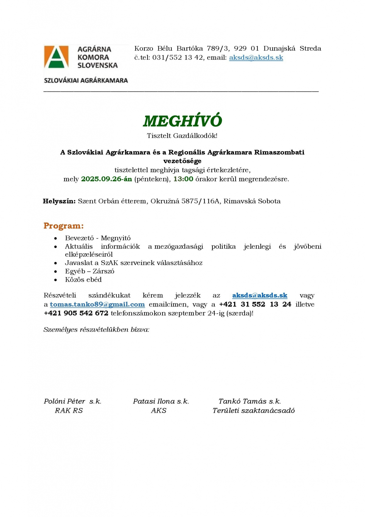 Meghívó-Tagsági értekezlet-Rimaszombat-2025. szeptember 26.