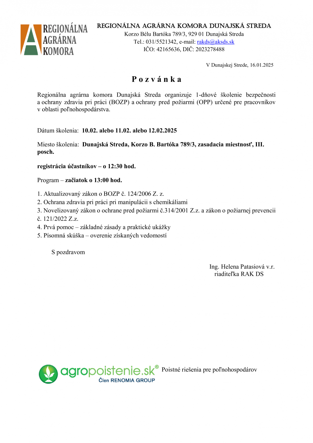Preškolenie BOZP a OPP 10.,11.,12.2.2025