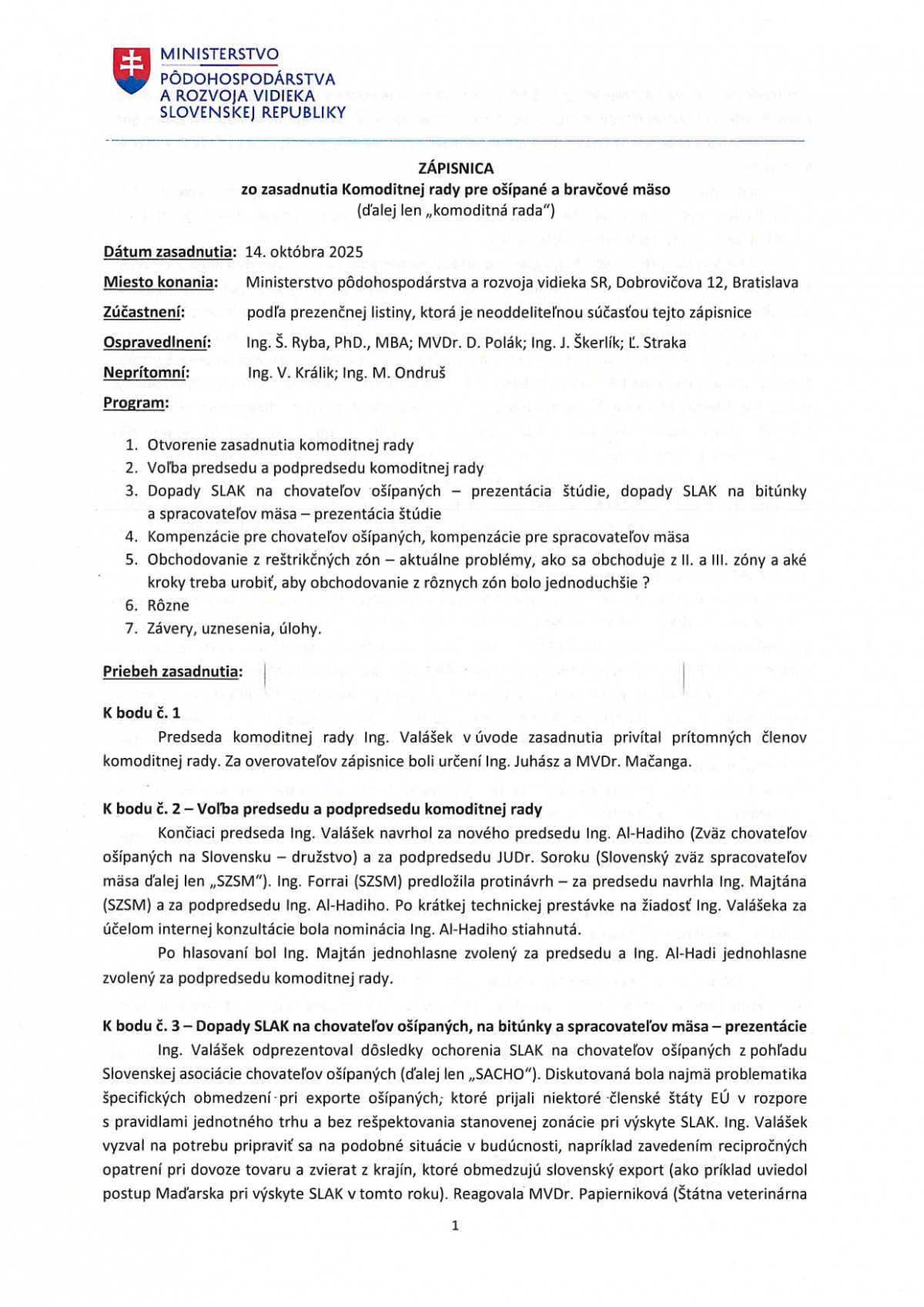 Zápisnica zo zasadnutia KR pre ošípané a bravčové mäso